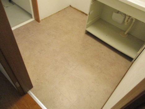 【町田市】洗面所の床をサンゲツのモカストーンへ張替え。下地処理とクッションフロア施工で清潔感あふれる快適な空間を実現したリフォーム