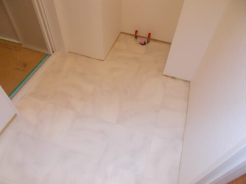 リリカラのクッションフロアの美しい石目調デザインの施工イメージです。