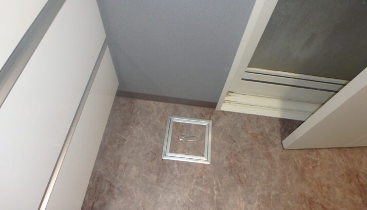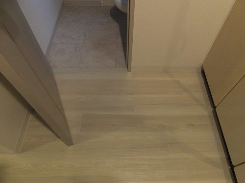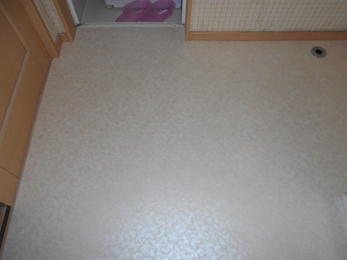 まずは、リフォームを行う前の、施工前の洗面所の床の様子をご覧ください。