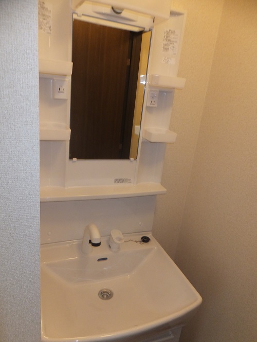 ※参考画像:メインの鏡の下、蛇口の奥にあるのがチャイルドミラーです。